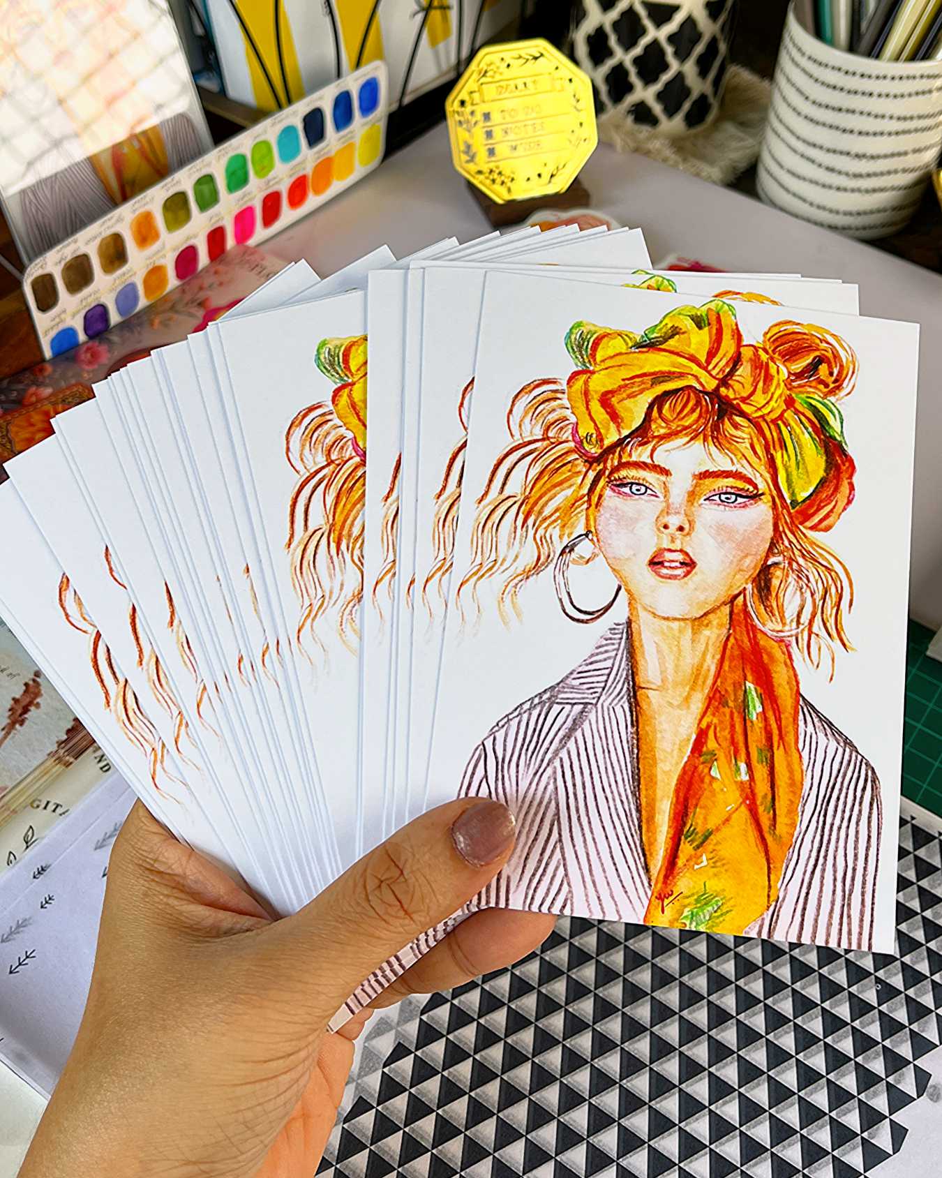 Printed on premium ivory cardstock with a soft gloss finish, Citrine works beautifully as happy mail, a journaling element, or a mini art piece for your desk or wall. A small artwork that carries colour, story, and intention.